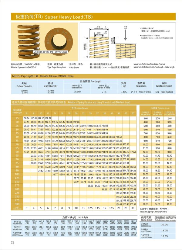 • Deflection (mm): Khoảng cách nén của lò xo tương ứng với chu kỳ làm việc.